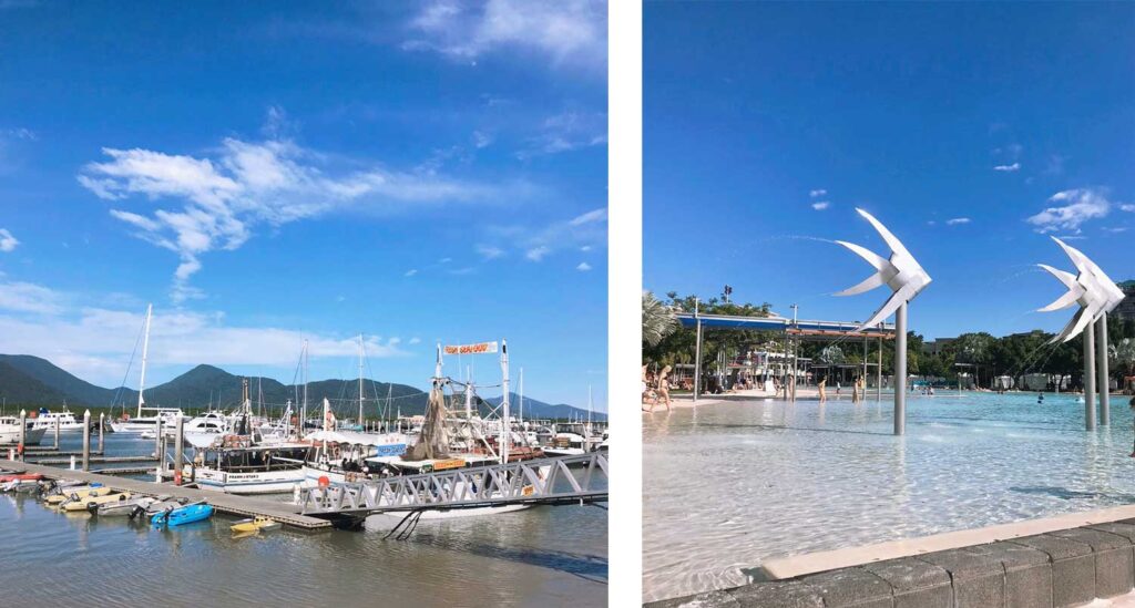 ケアンズ中心街では海沿いのエスプラネードを散歩したりショッピングや無料の公共プールラグーン、週末のマーケット等のんびりケアンズを満喫する事が出来ます。