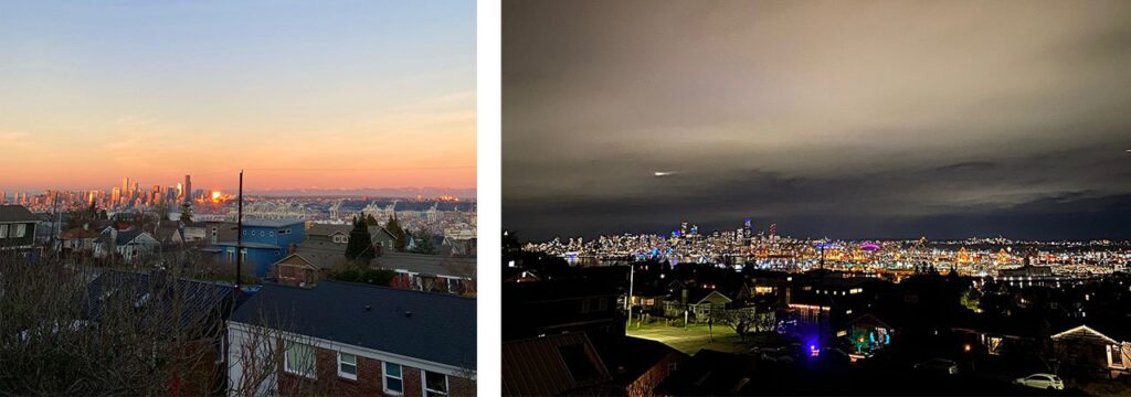 シアトルダウンタウンまで車で20分、公共機関を使って30分